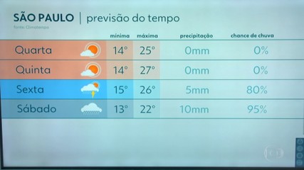 Ruas ficaram alagadas na zona norte e a cidade registrou trânsito de 159 quilômetros no fim do dia. Previsão do tempo para o brasil e o mundo. Previsão do tempo para o estado de são paulo, campinas e região. 14 º são paulo, sp. Estágio de mobilização é o 2º nível em uma escala de cinco e significa que há riscos de ocorrências.